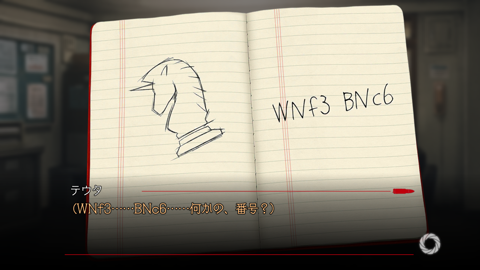 그리곤 체스의 나이트와 의미 불명의 문자를 테우라의 수첩에 적어주는 걸로 취재는 끝이 난다