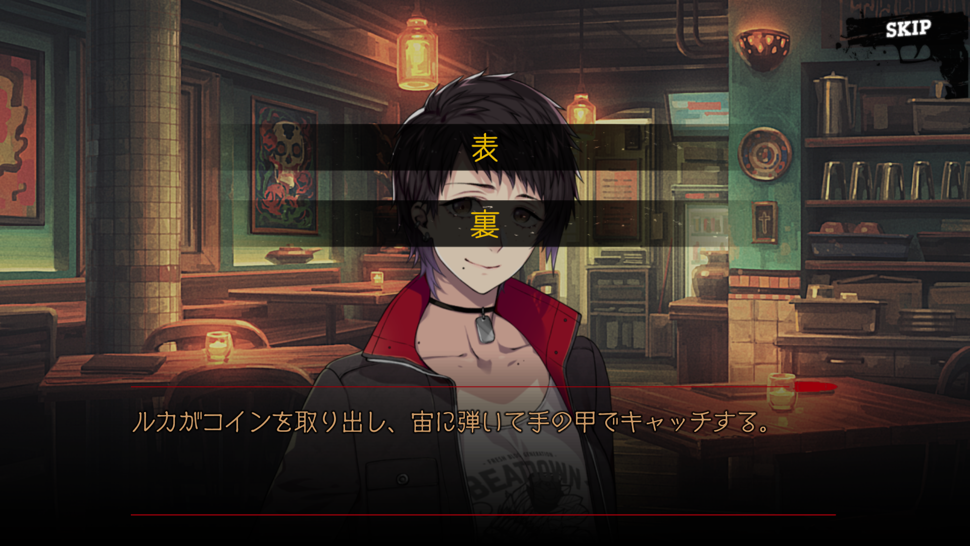 정답은 앞면이었는데 생각보다 선택지도 잘 짰구나 싶었던 점이 뒷면을 선택했을 땐 결국 내기에서 진 테우라가 점심을 사게 되어 나중에 린보와 슈를 카페에서 만났을 때 돈이 없어 커피값을 지불하지 못했다