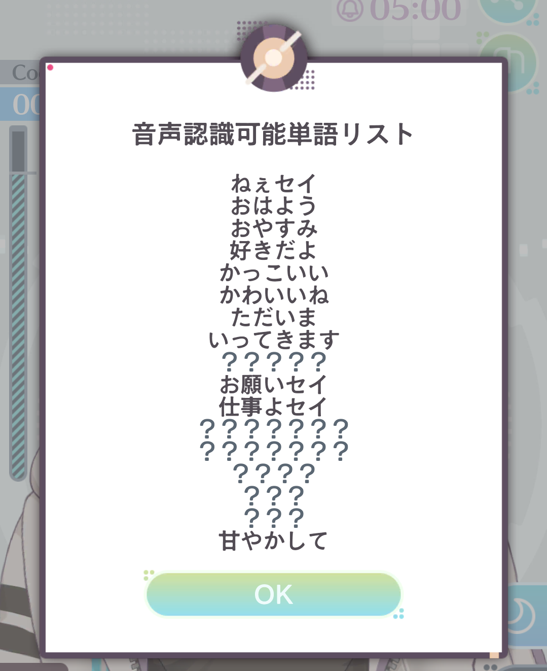세이가 인식 가능한 단어는 화면 우측 하단의 아이콘을 터치함으로써 언제라도 확인할 수 있습니다.