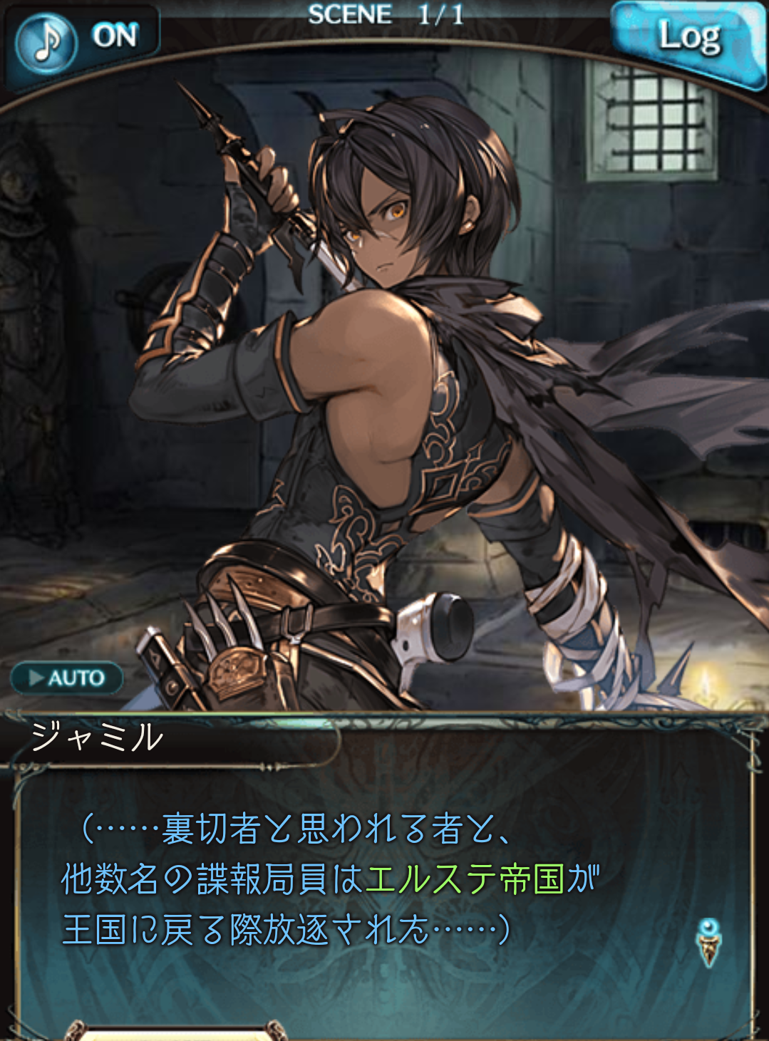 메인스토리로 추정되는 어떤 사건이 마무리된 후 제국은 에르스테 왕국으로 돌아갔고 첩보원도 축소되었다는 소식을 들었지만 일족과 부모의 원수를 갚을 때까지 쟈밀은 이 공역을 나갈 수 없다고 한다