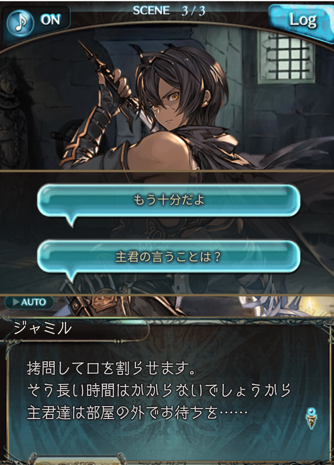 "고문해서 입을 열게 하겠습니다. 그렇게 긴 시간은 걸리지 않을 테니 주군은 방 밖에서 기다려......"