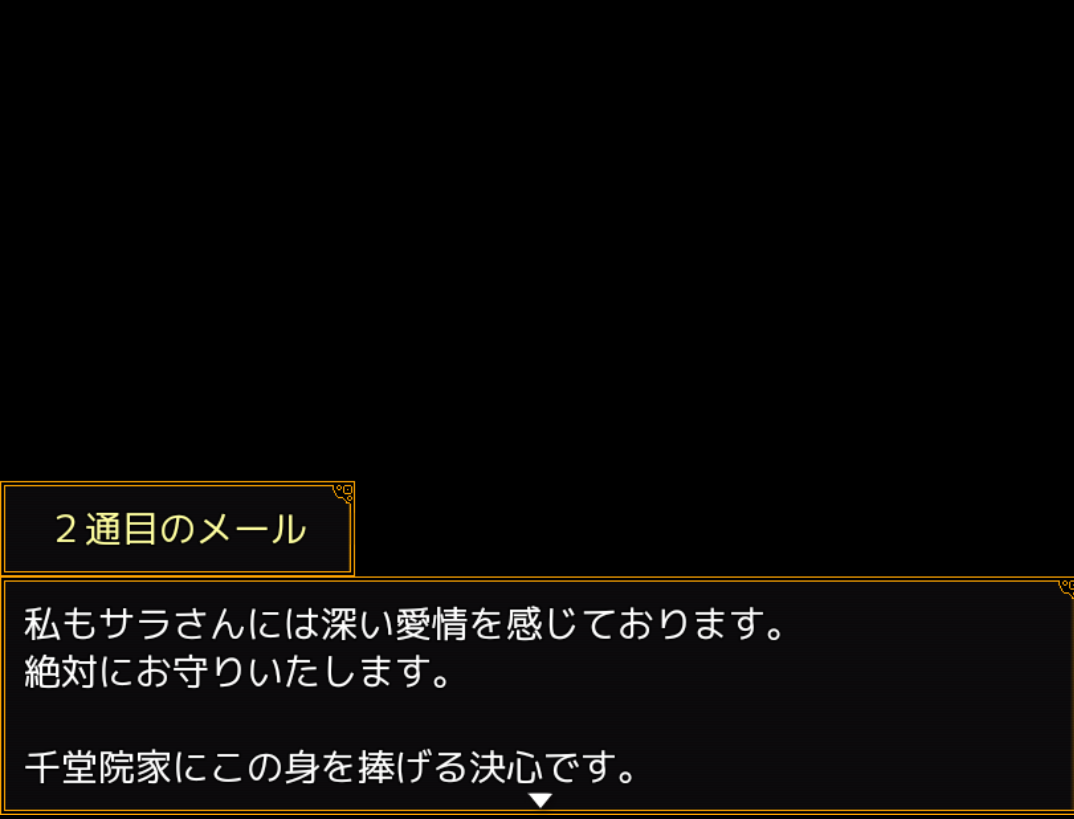 "저도 사라 씨에게는 깊은 애정을 느끼고 있습니다. 반드시 지키겠습니다. 치도인 가에 이 몸을 바칠 결심입니다."
