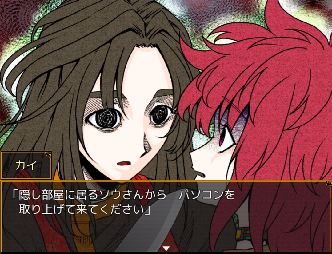 "숨겨진 방에 있는 소우 씨로부터 컴퓨터를 들고 와주세요."