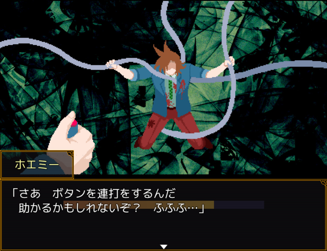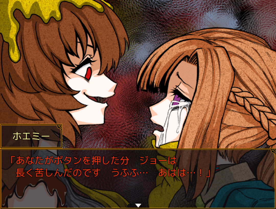 "당신이 버튼을 누른 만큼, 죠는 오랫동안 괴로워 했답니다. 우후후... 아하하...!"