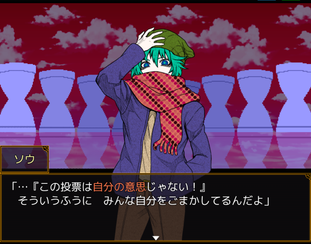 "...'이 투표는 내 의사가 아니야!', 그렇게 모두는 자신을 꾸며내고 있는 거라고."