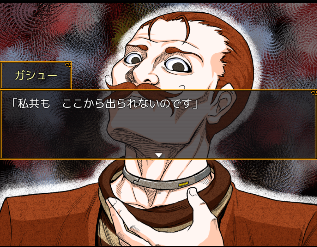 아리스는 탈출 방법을 말하라며 분노하고, 가슈는 탈출 방법이 없다고 말하는 상태