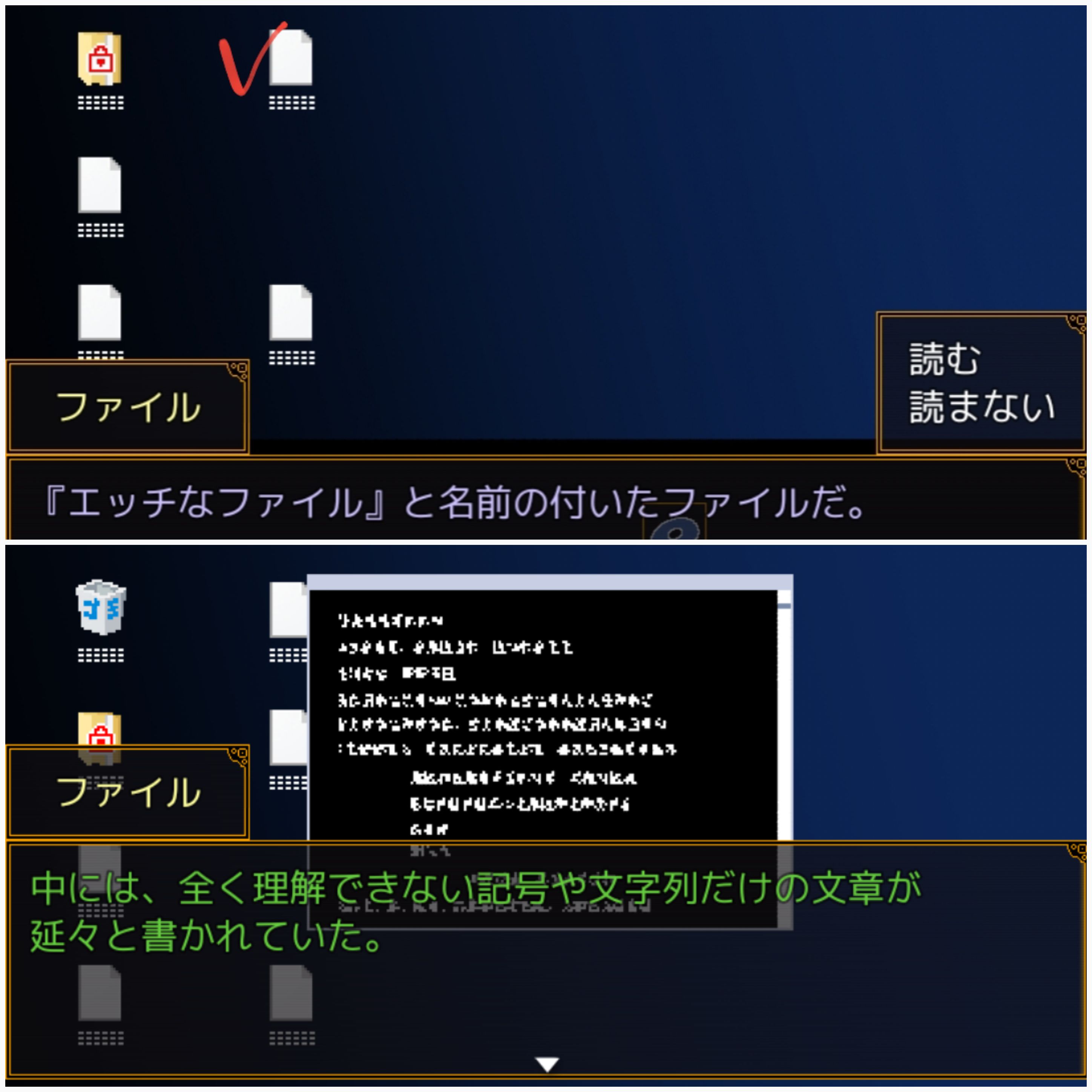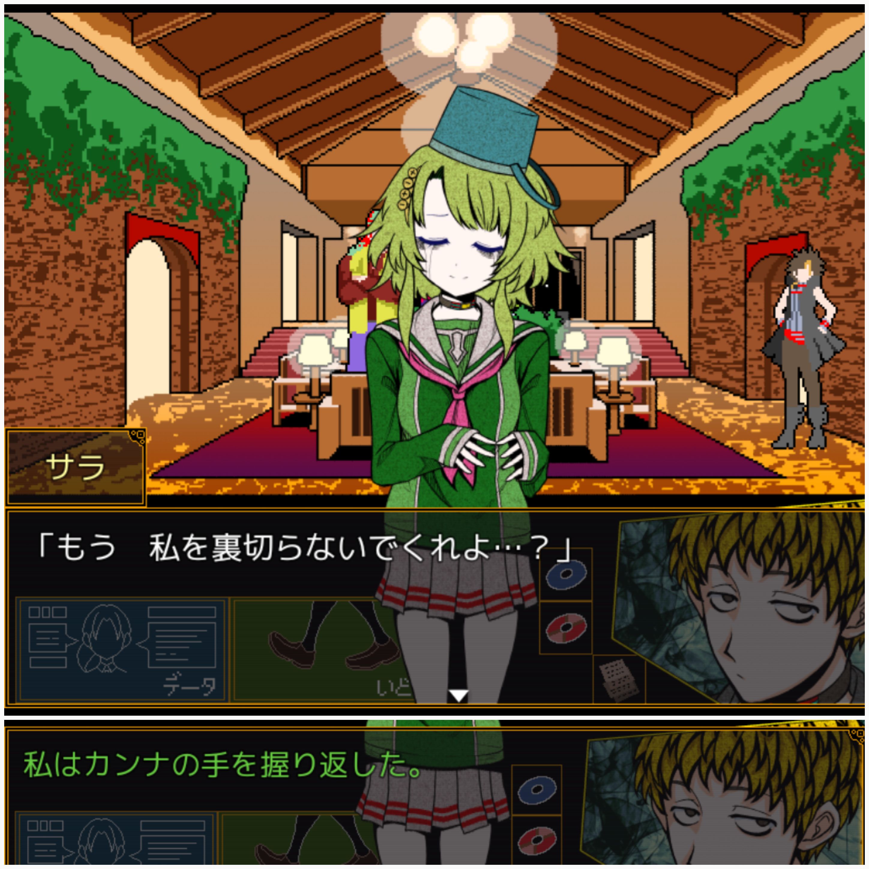 다음으로 거짓의 방에 들어가 노엘의 칩을 회수하려 하지만, 한나키에 의해 저지당해 어쩔 수 없이 지금은 포기한다