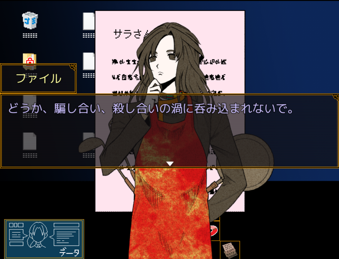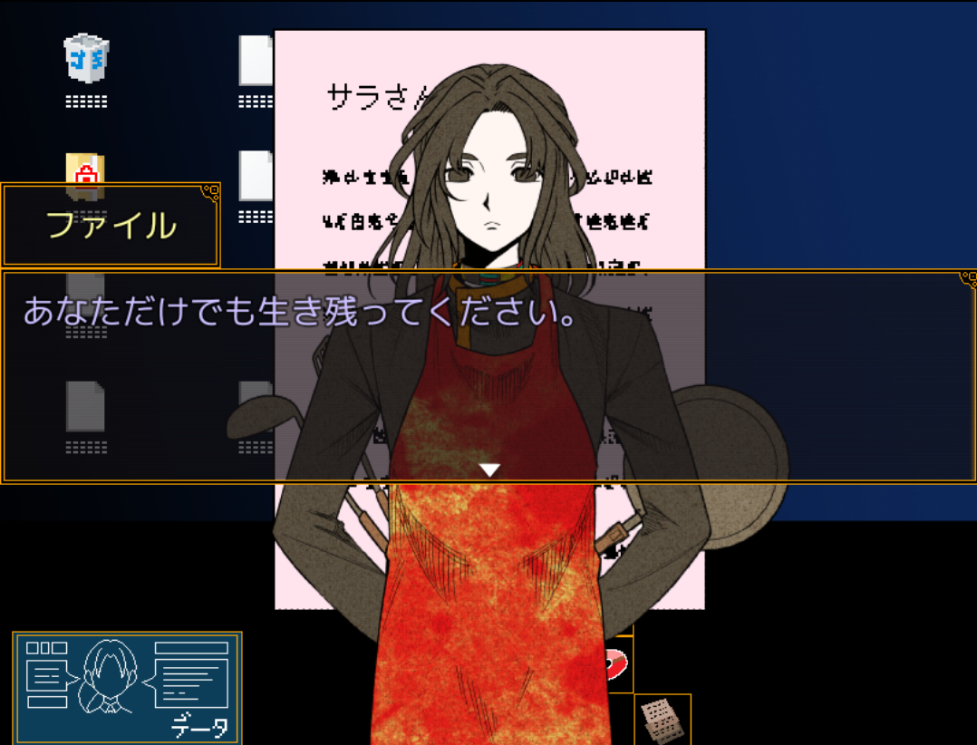 사라는 데스 게임 때문에 친우뿐만 아니라, 가족도 잃었구나