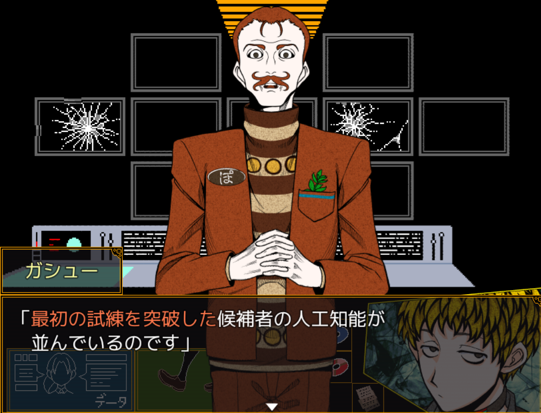 케이지가 가슈에게 모니터 안의 인공지능에 대해 묻는다