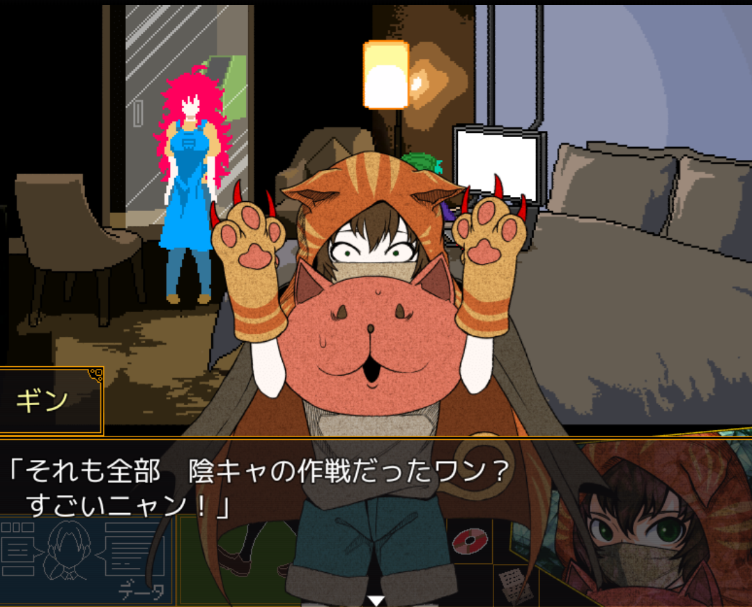 "그것도 전부, 음침한 캐릭터의 작전이었나멍? 대단하다냥!"