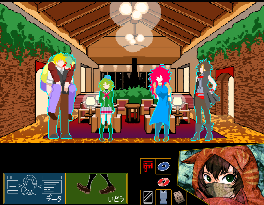케이지의 도움을 받아, 큐타로를 데리고 로비로 나온다