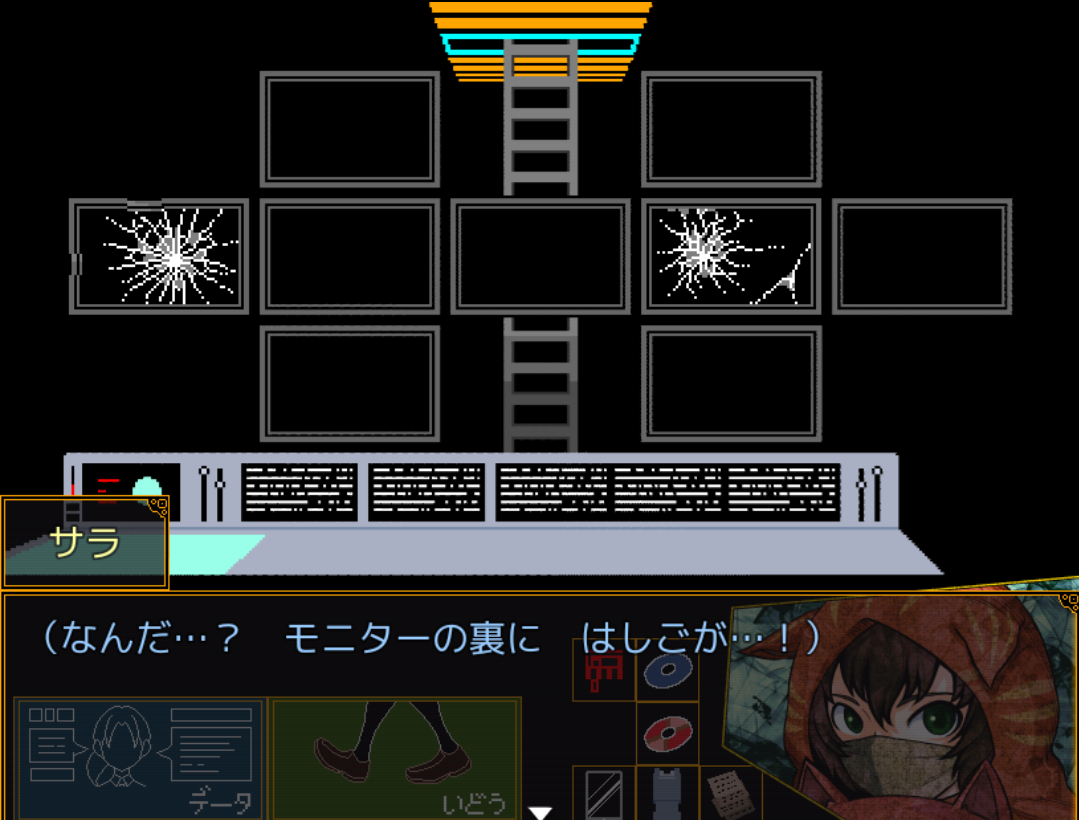 (뭐지...? 모니터 뒤에, 사다리가...!)