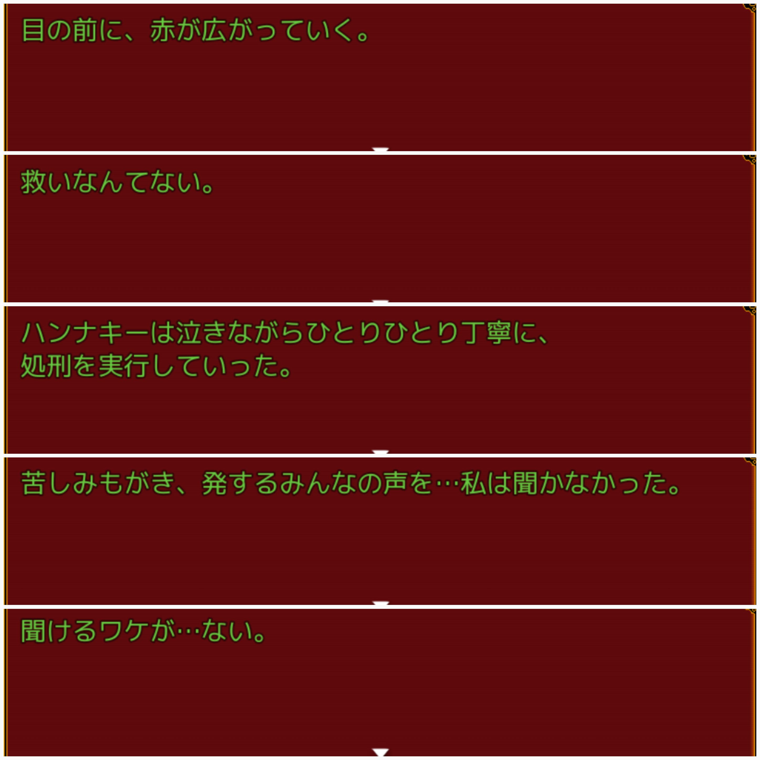 한나키는 울면서 한 명 한 명 정중히, 처형을 실행해갔다.