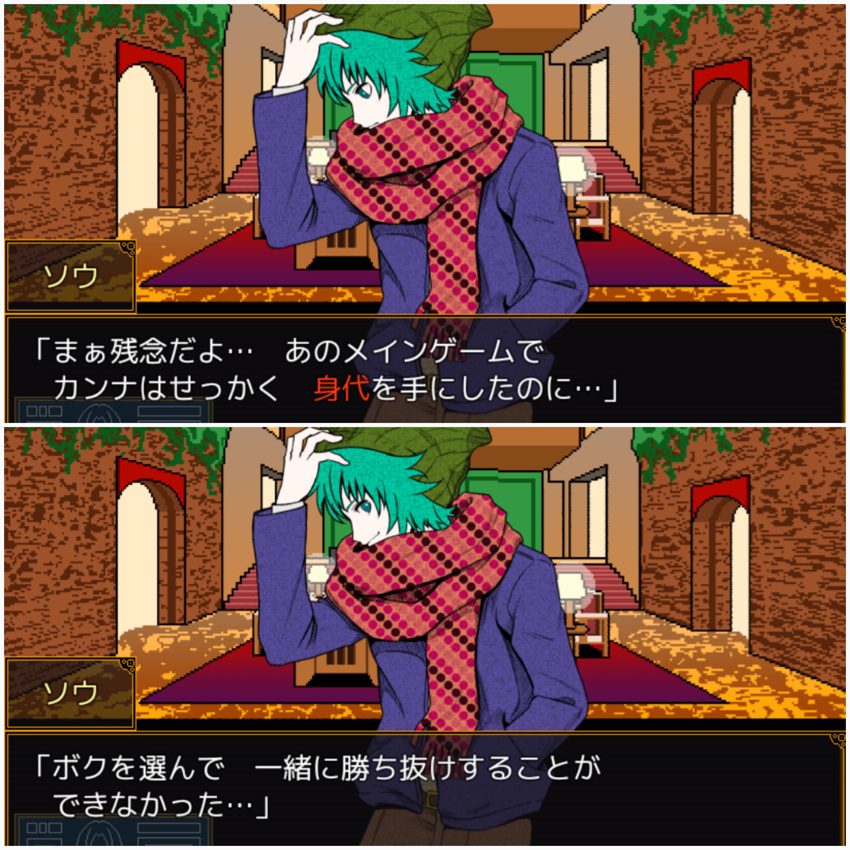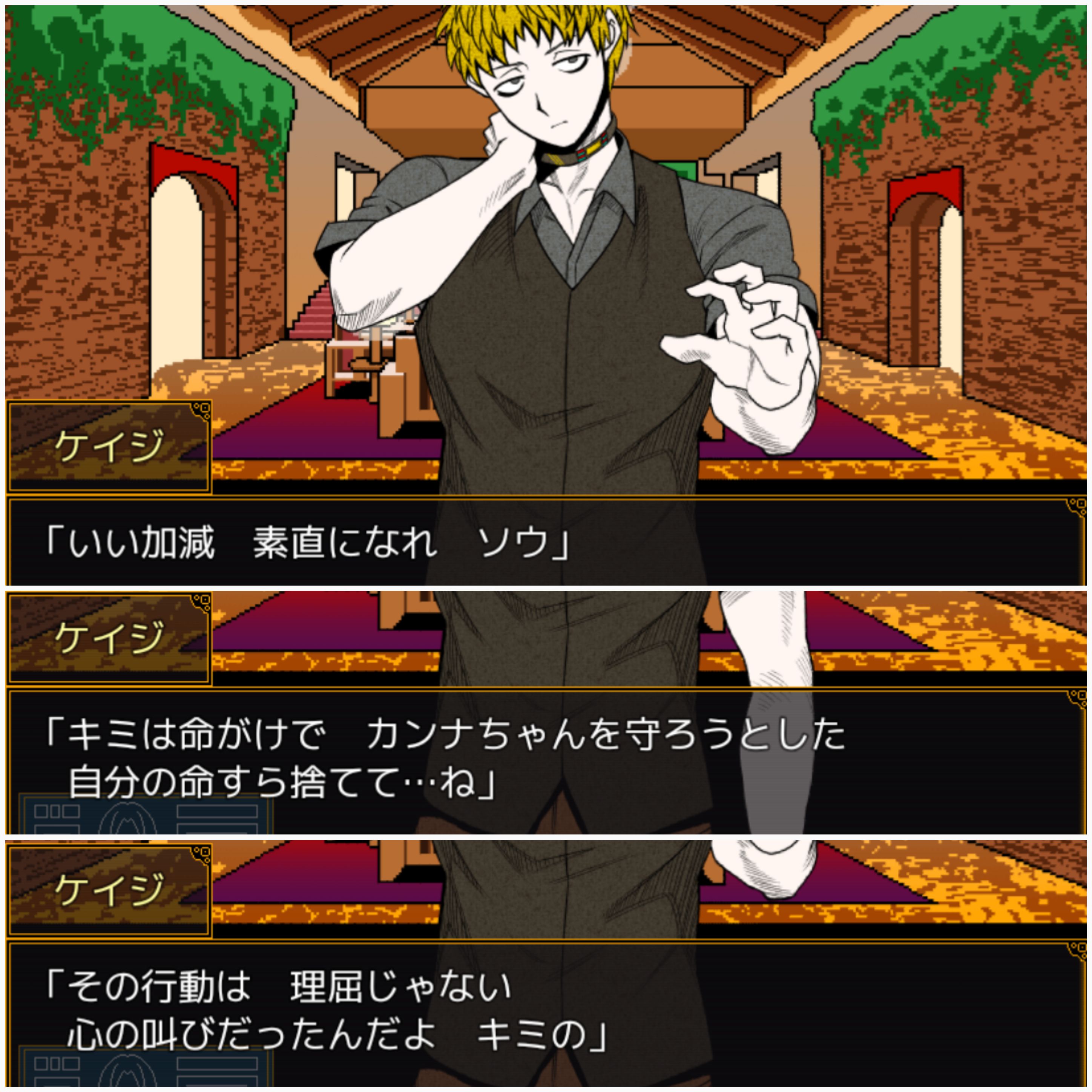 그러니 칸나는 다른 참가자들이 소우를 몰아갈 때도, 실은 소우가 상냥한 사람이라는 걸 알고 소우를 필사적으로 감쌀 수 있었다