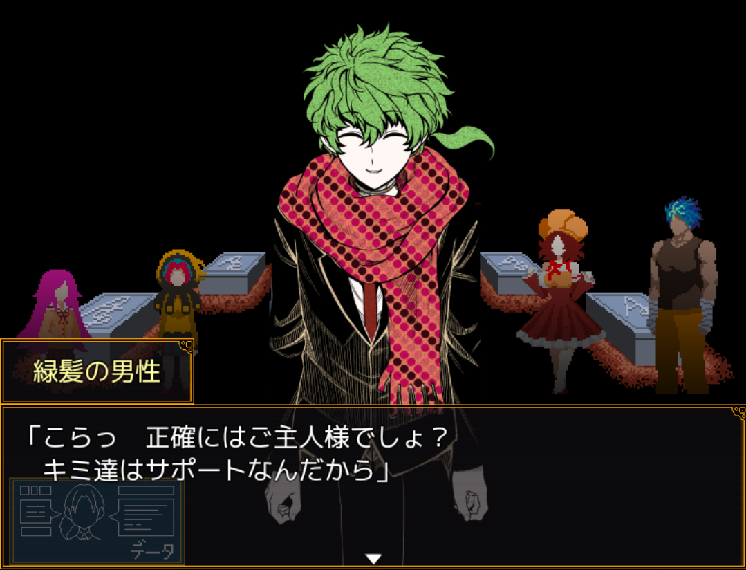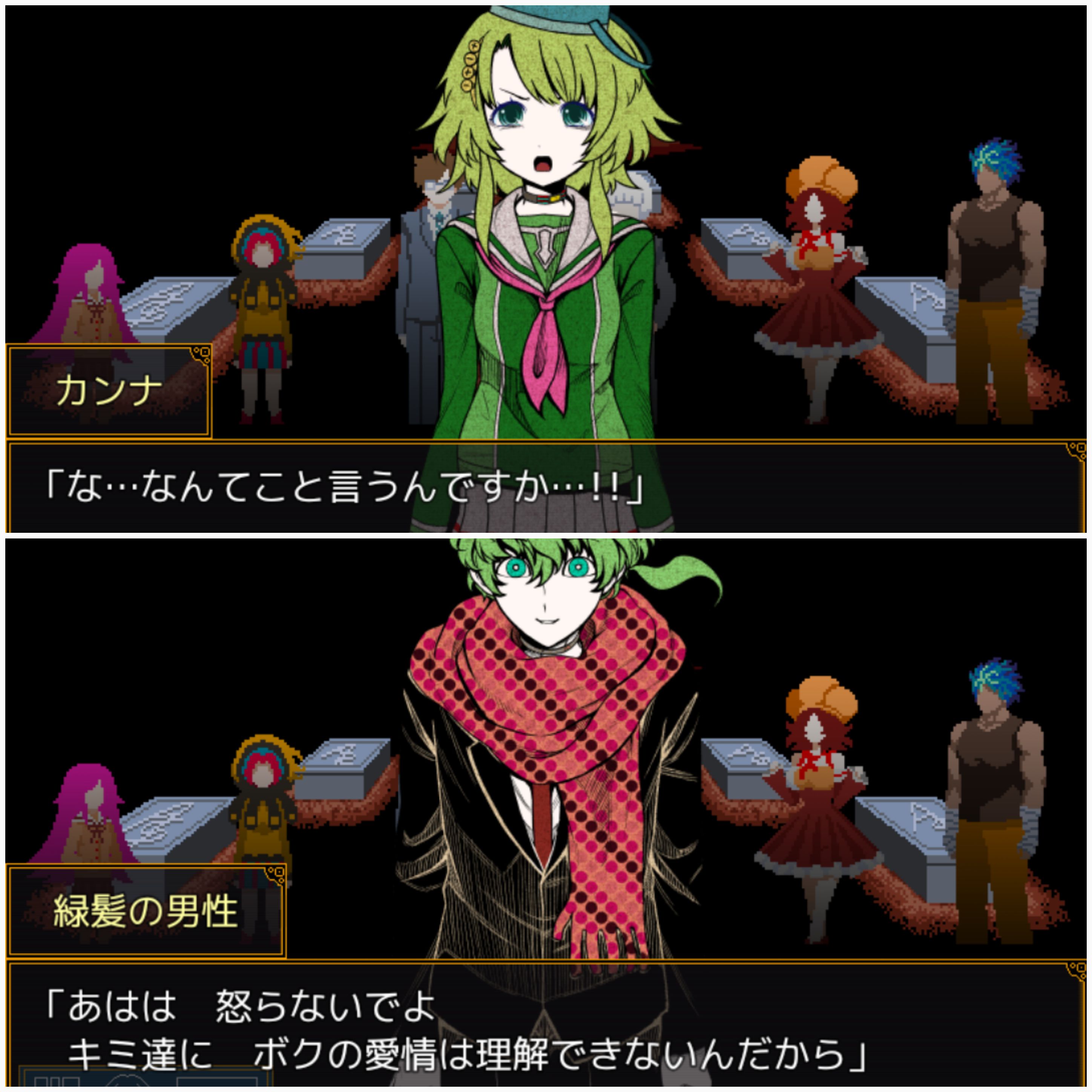 녹발의 남성 "아하하, 화내지 마. 너희들은 나의 애정을 이해할 수 없으니까."