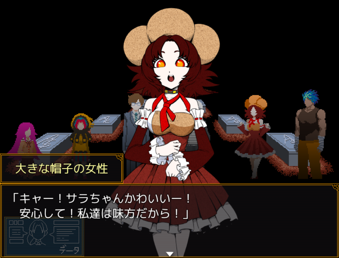 큰 모자를 쓴 여성 "꺄ー! 사라 쨩 귀여워ー! 안심해! 우리들은 아군이니까!"