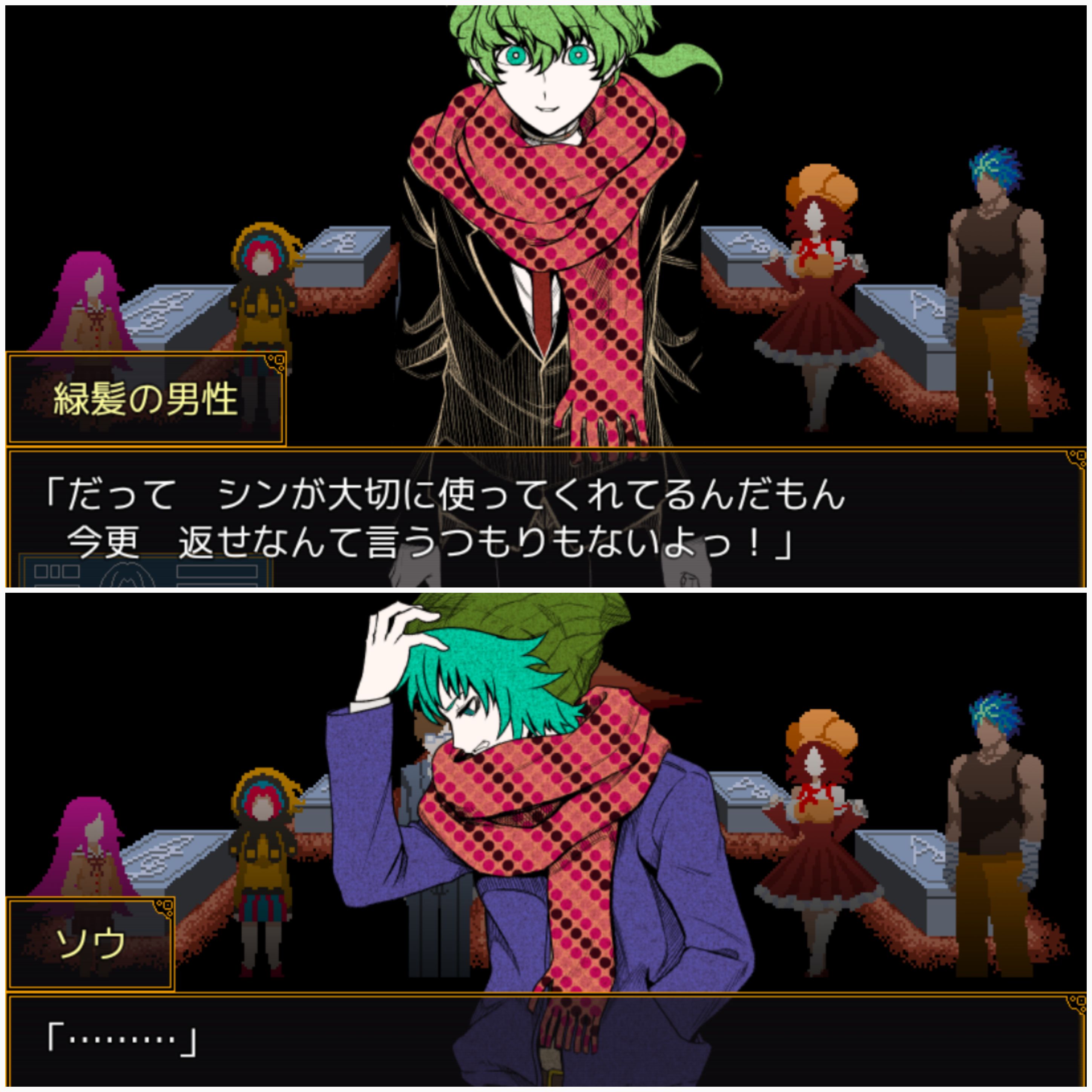 녹발의 남성 "그야, 신이 소중하게 사용해 주고 있는걸. 이제 와서, 돌려달라고 할 생각도 없어!"
