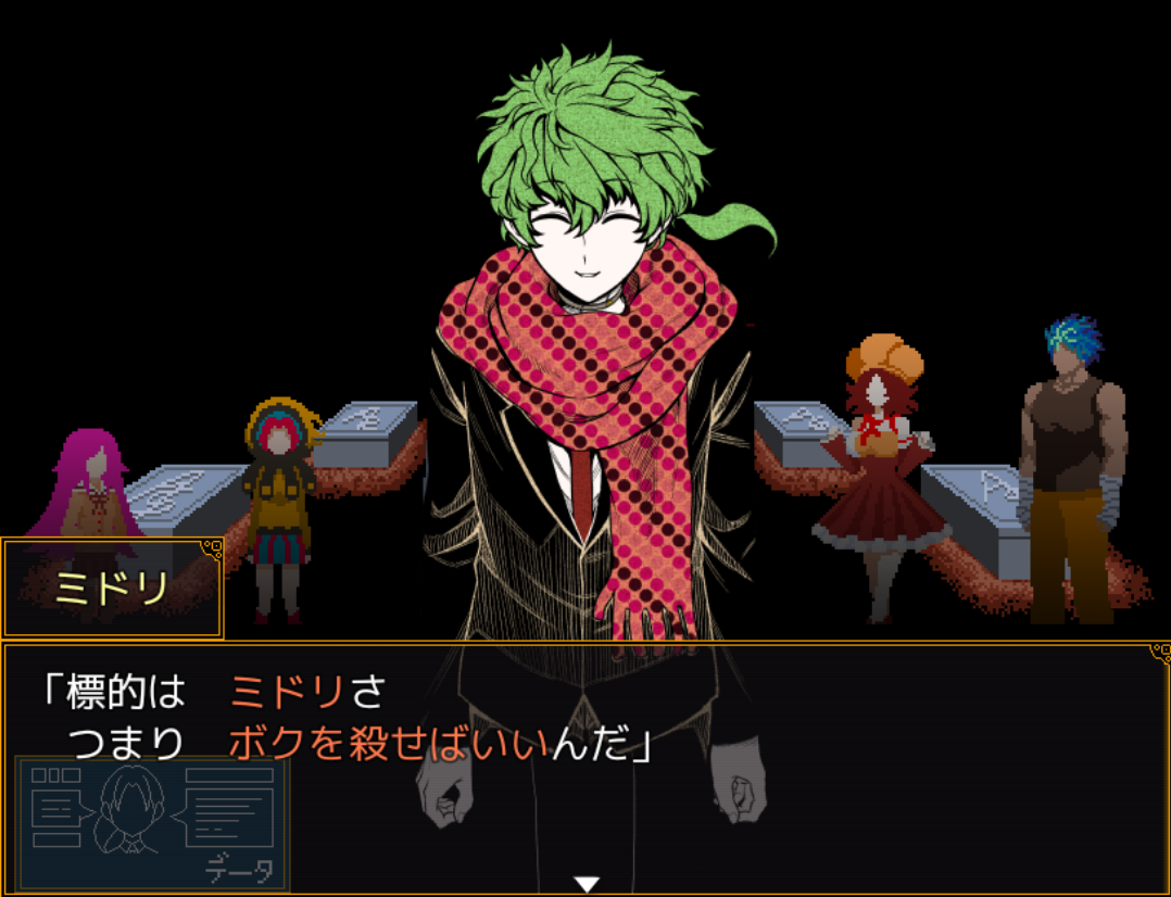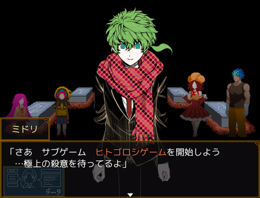 "자, 데스 게임, 살인 게임을 개시하자... 극상의 살의를 기다리고 있을게."