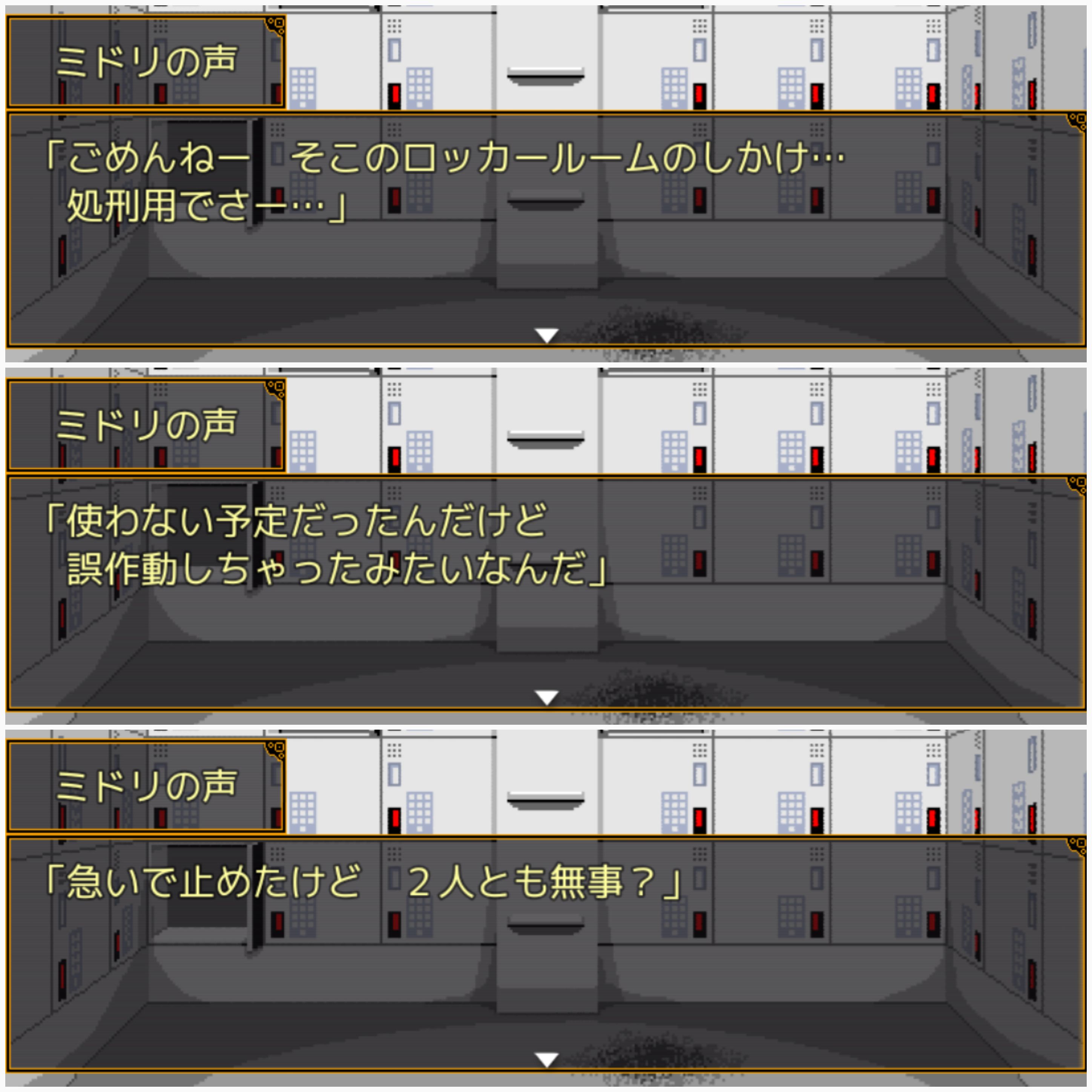 미도리의 목소리 "미안ー. 거기있는 라커룸의 장치... 처형용이라 말이지ー..."
