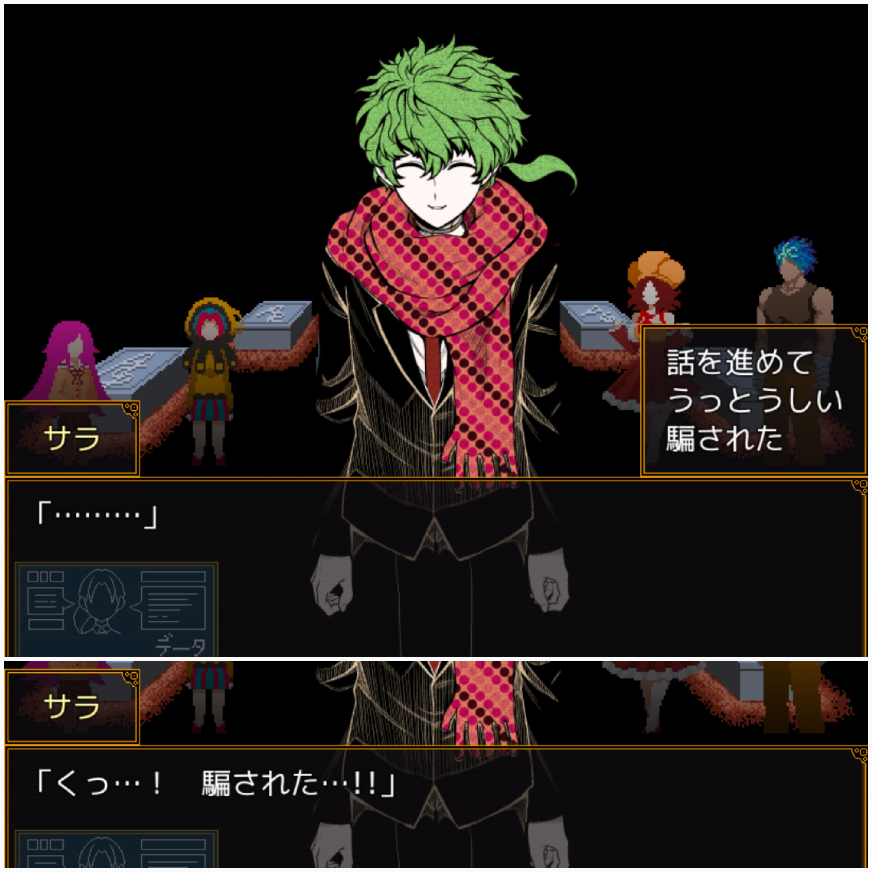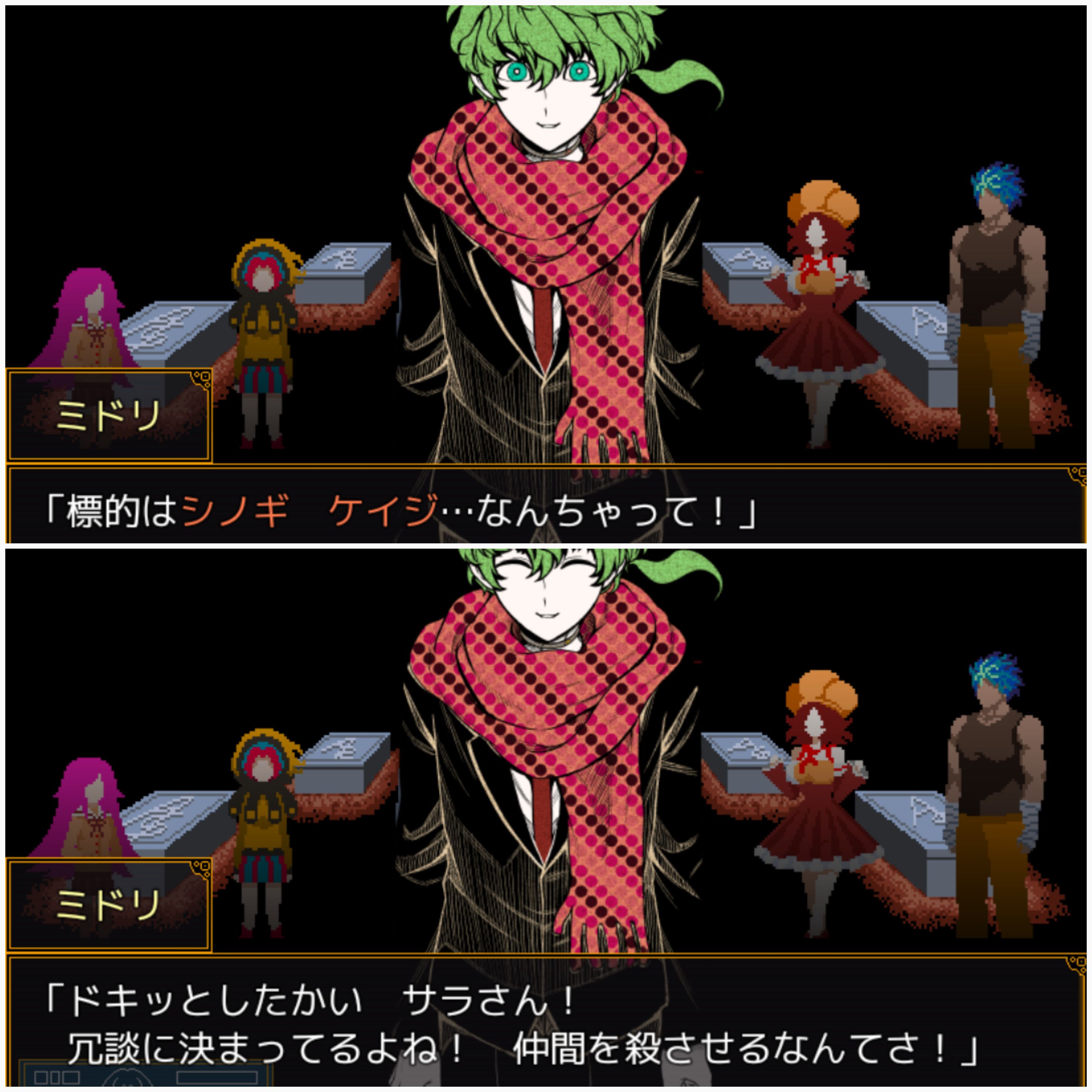 "두근했나, 사라 씨! 농담인 게 당연하지! 동료를 죽이게 하다니!"