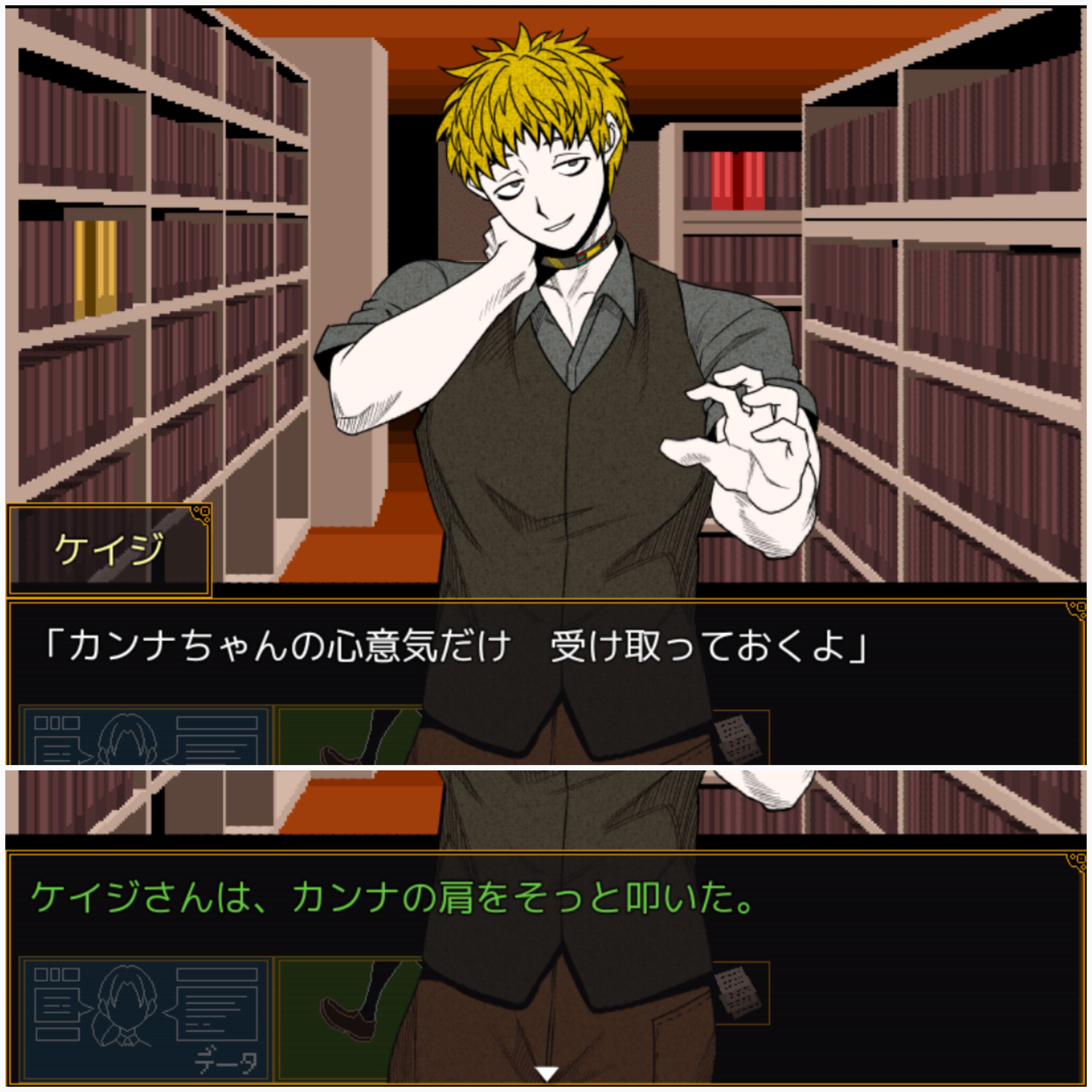 케이지 씨는, 칸나의 어깨를 가볍게 두드렸다.