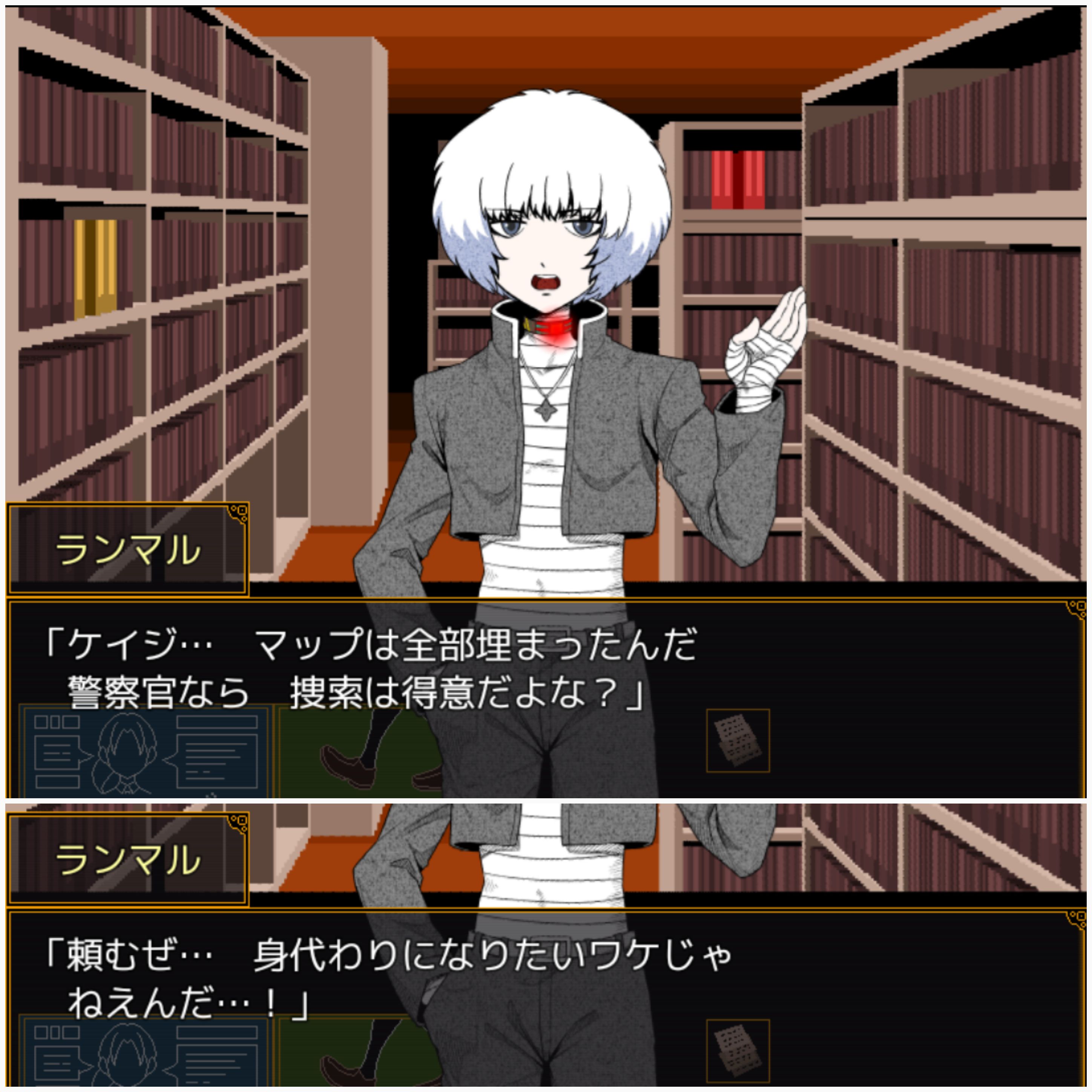 "케이지... 맵은 전부 채웠어. 경찰관이라면, 탐색은 특기잖아?"