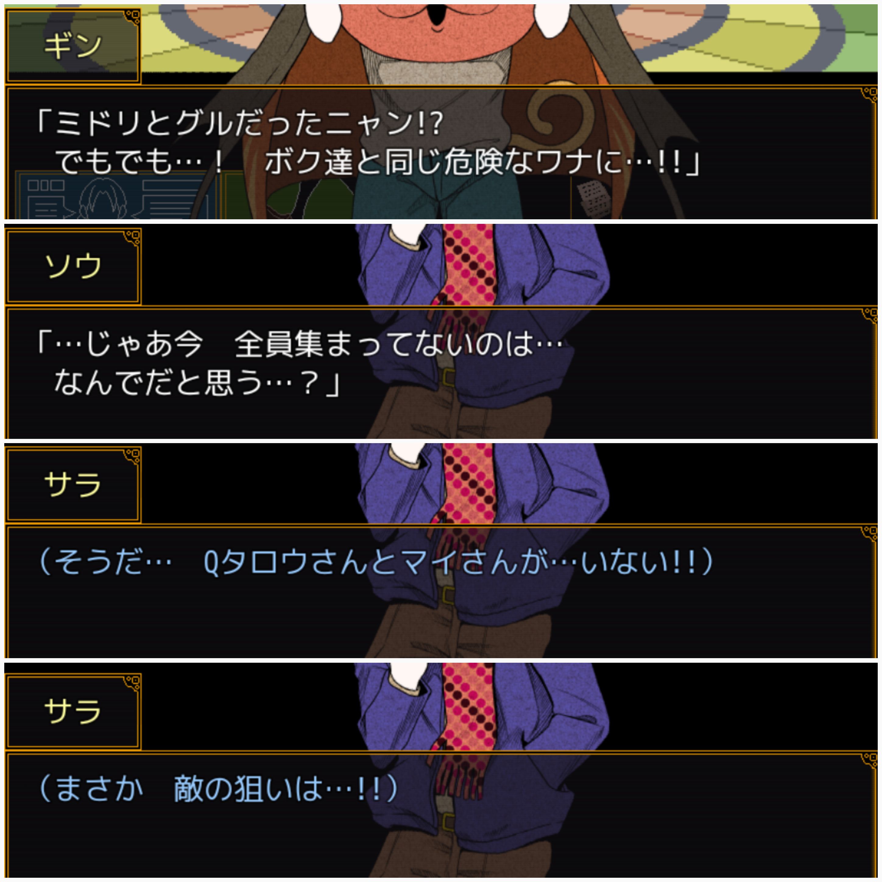 긴 "미도리랑 한패였던 거였냥!? 애초에...! 우리들과 같은 위험한 함정에...!!"