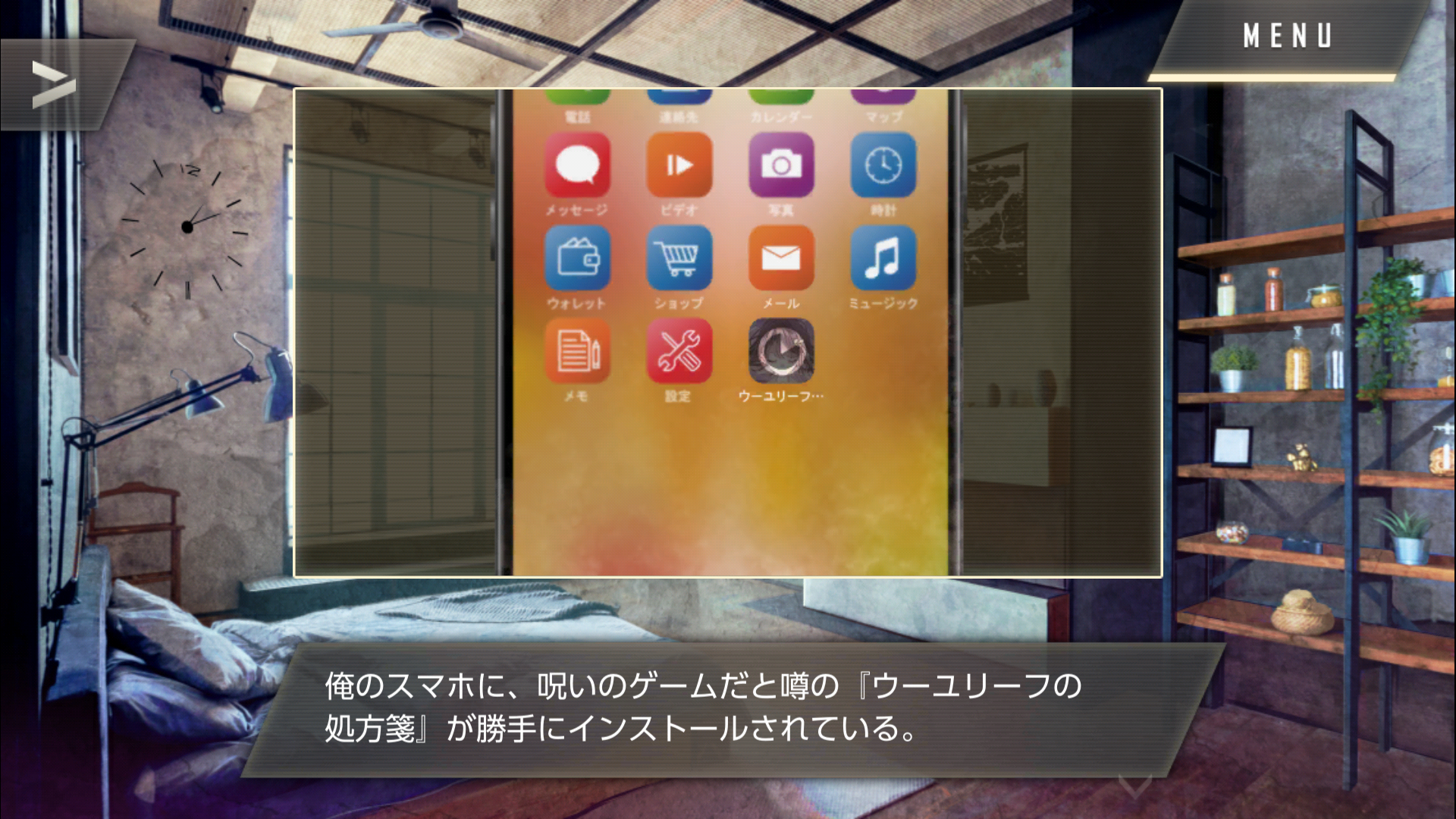 집으로 돌아온 마츠리는 자신의 스마트폰에 저주의 게임으로 소문이 난 우유리프의 처방전이 멋대로 설치되어 있는 것을 발견한다