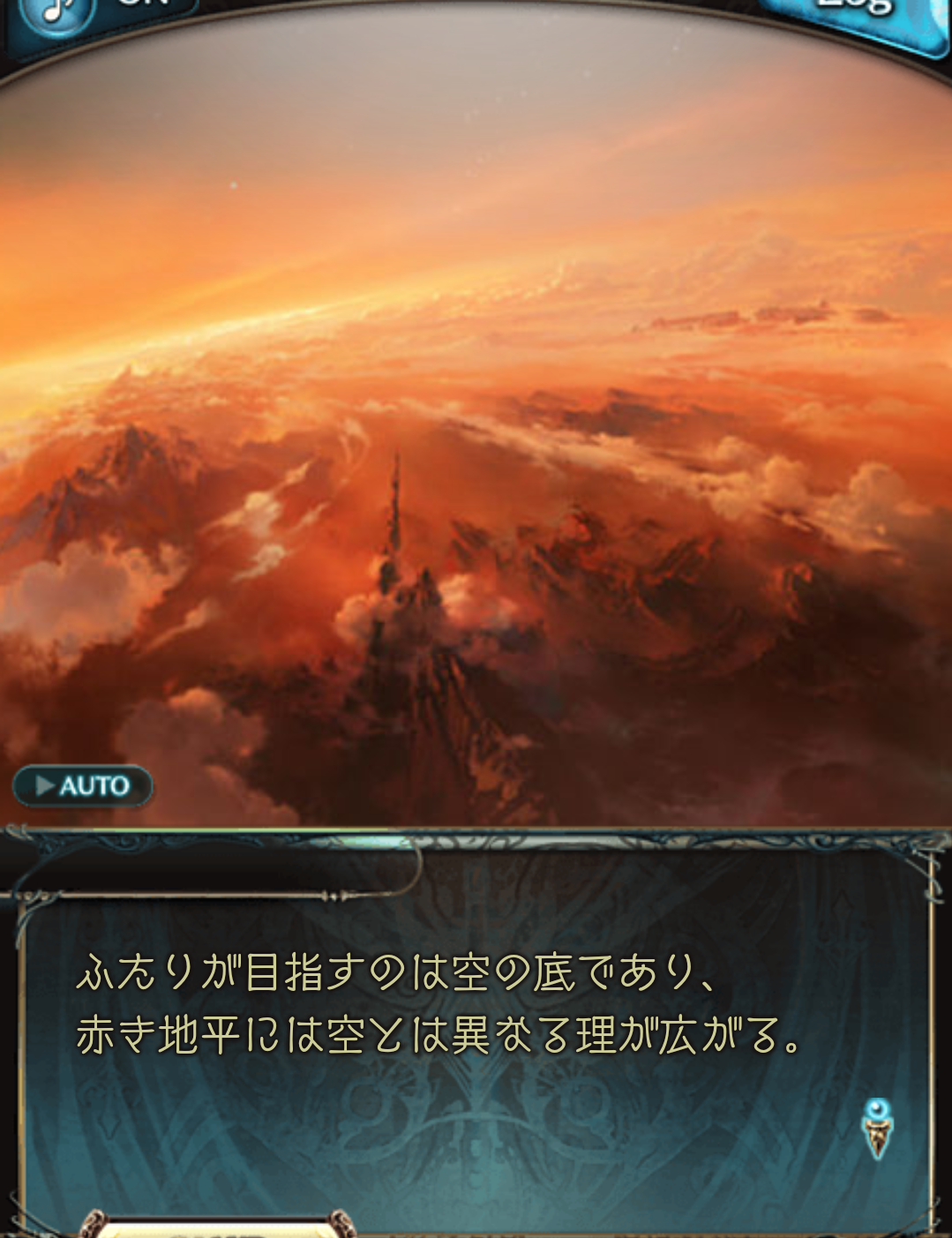 두 명(로키, 펜릴)이 향하는 곳은 하늘의 바닥이며, 붉은 지평에는 하늘과는 다른 이치가 펼쳐진다.