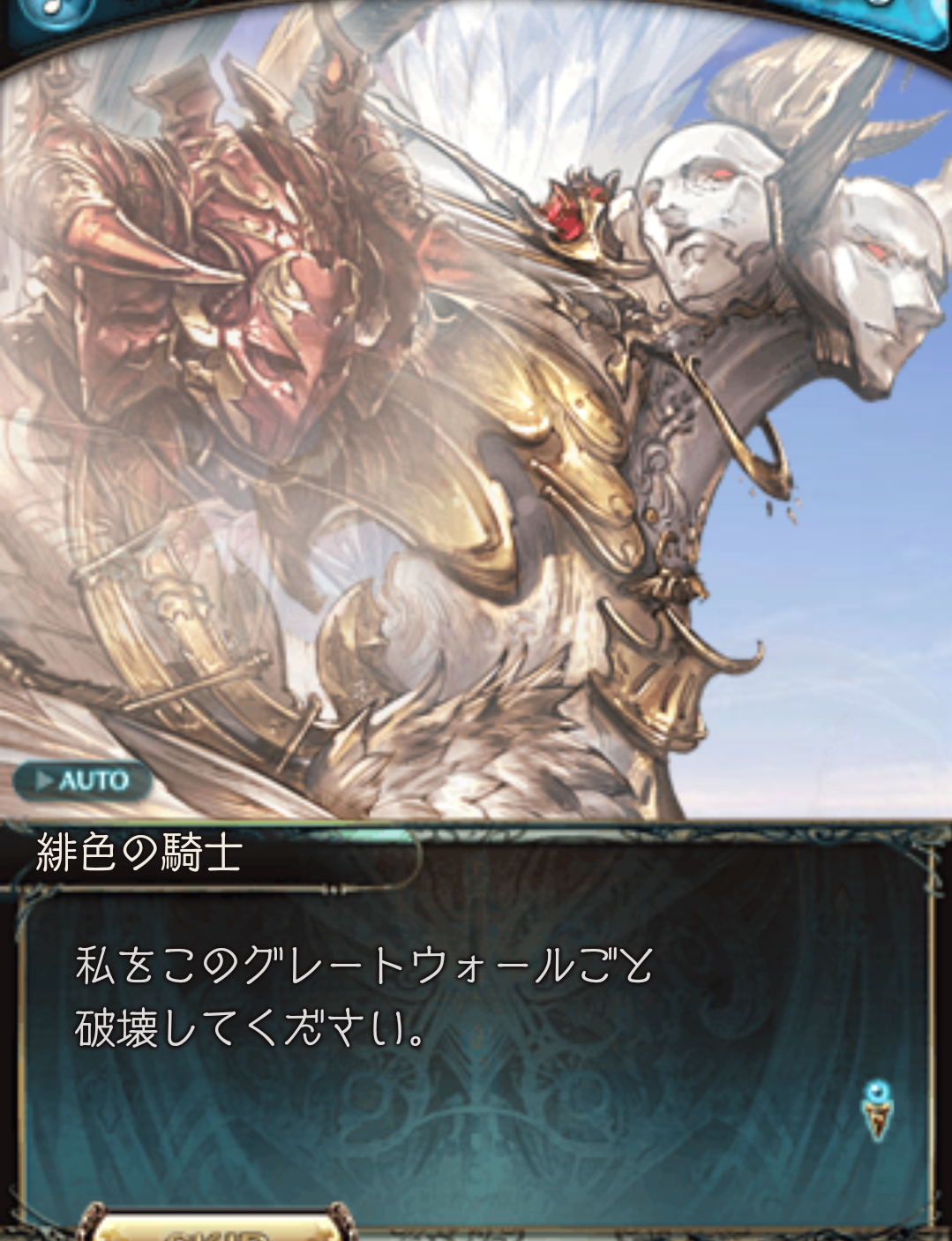 비색의 기사는 하루를 지키기 위해 스스로 그레이트 월과 융합하여 그랑 일행에게 자신을 파괴해달라는 부탁을 한다