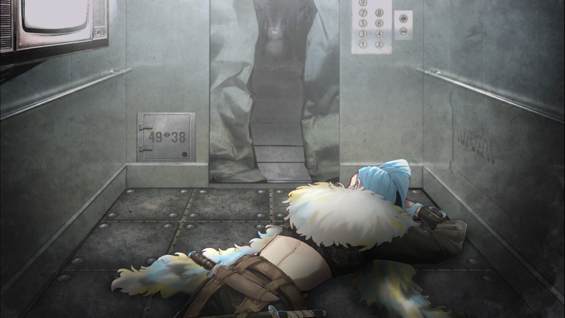 키리오가 마츠리의 곁에 떨어진 무언가를 주우려는 순간, 승강기 문쪽에서 소리가 나서 돌아보니 카나타가 벽을 타고 온 히로인에게 끌려가고 있었다