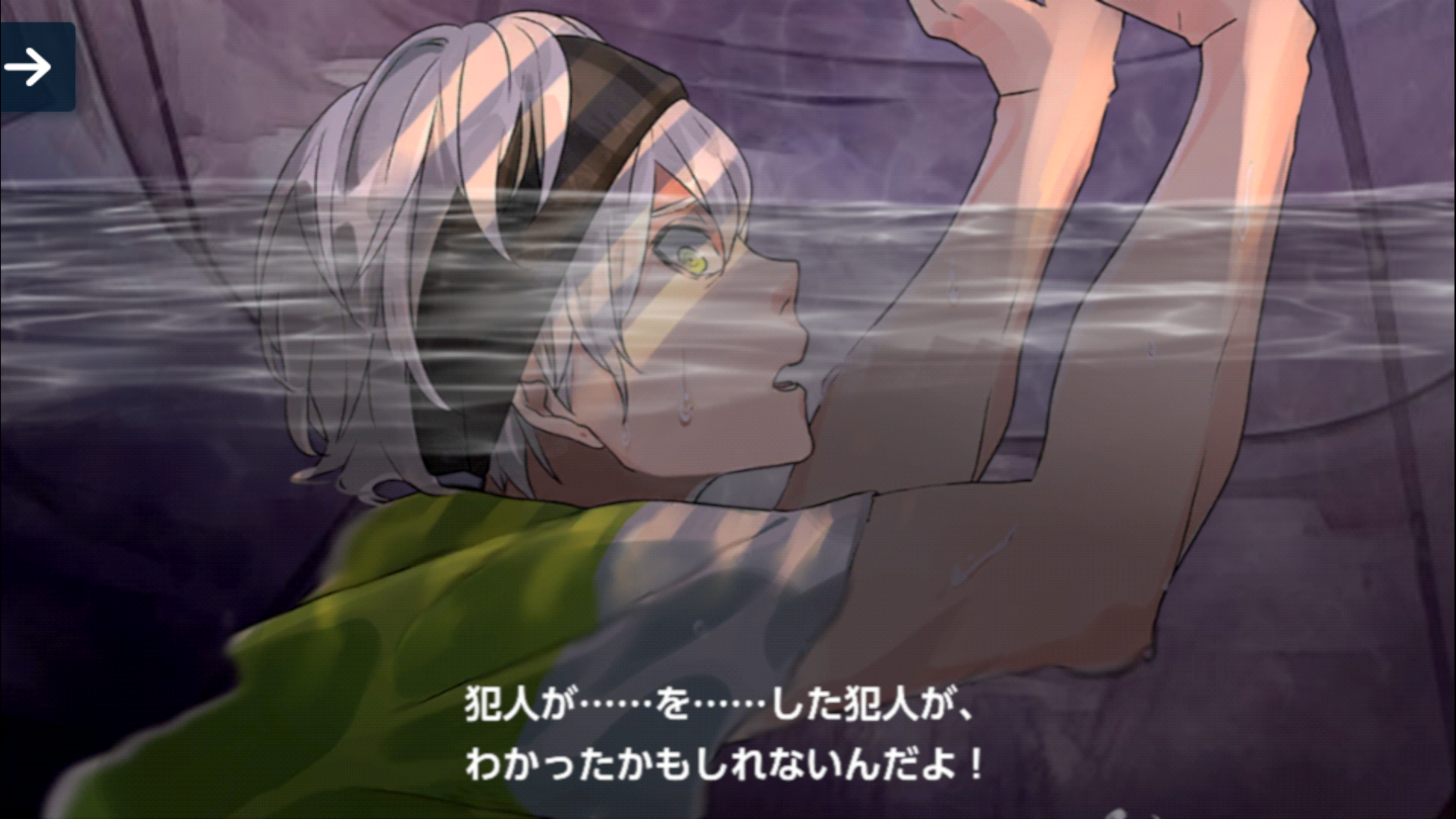 어딘가에 갇힌 츠무구가 물이 점점 차오르는 상황에서 죽기 싫다며 발버둥치는 장면