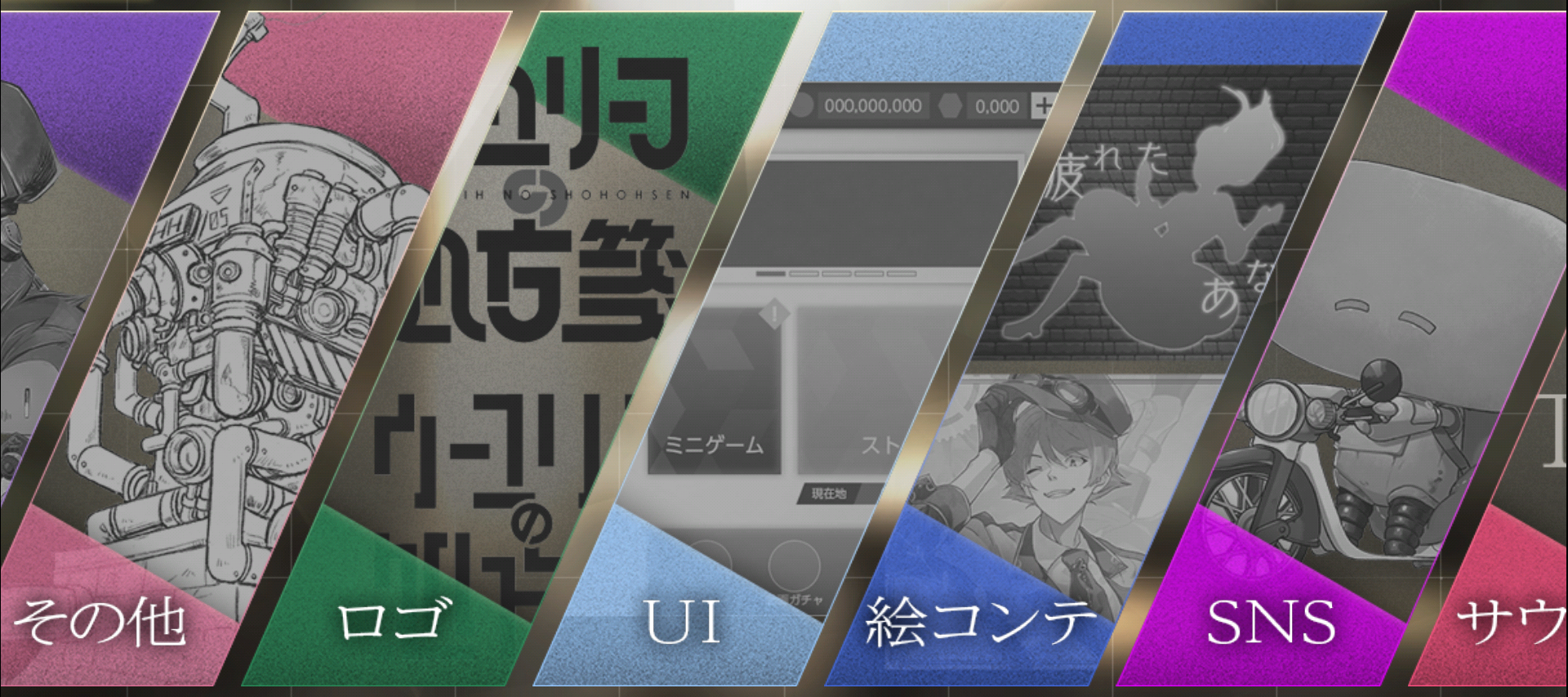 캐릭터의 전신 스탠딩 일러 및 복장, 표정들을 볼 수 있다