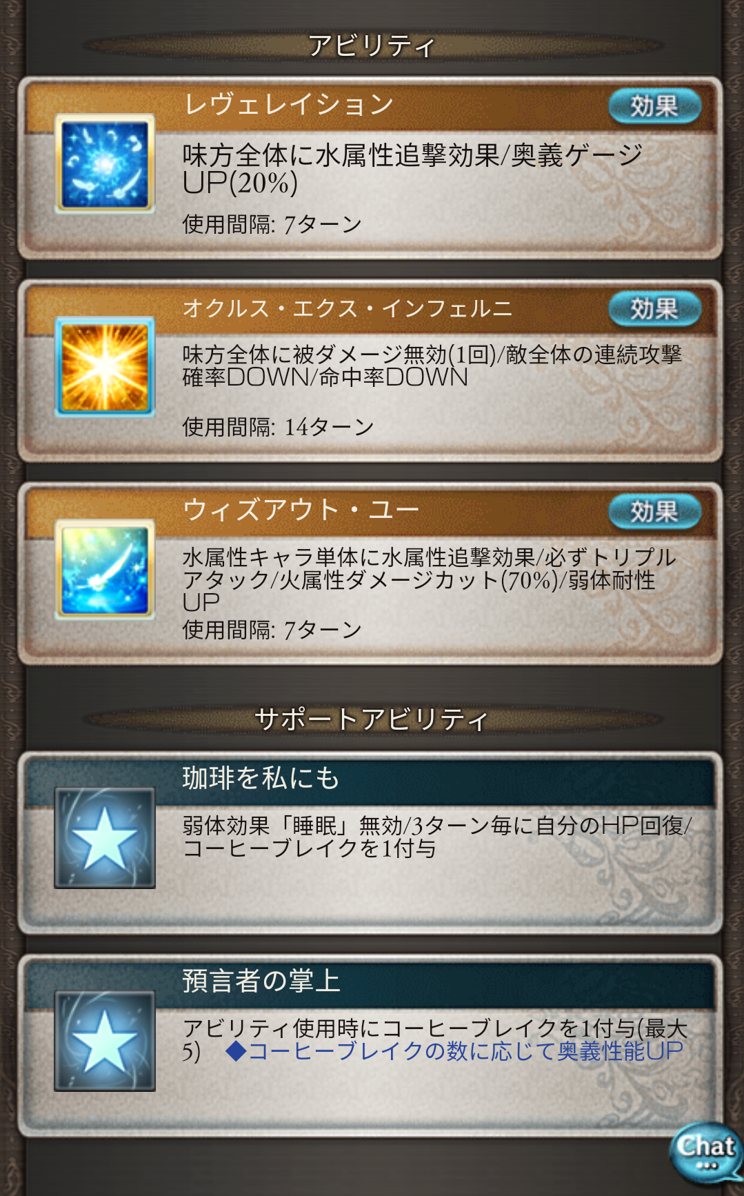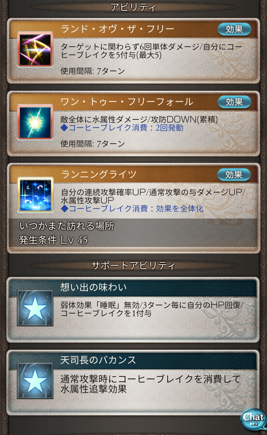 약체 효과 「수면」무효 / 3턴마다 자신의 HP 회복 / 커피 브레이크를 1부여