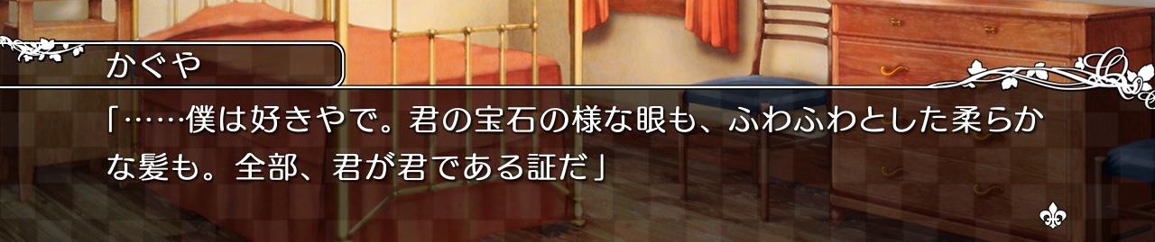 "나는 좋아해.너의 보석과 같은 눈도, 살랑거리는 부드러운 머리카락도. 전부, 네가 너라는 증표야." 라는 공략캐들이 유리카의 모습을 표현하는 대사가 겹친다거나
