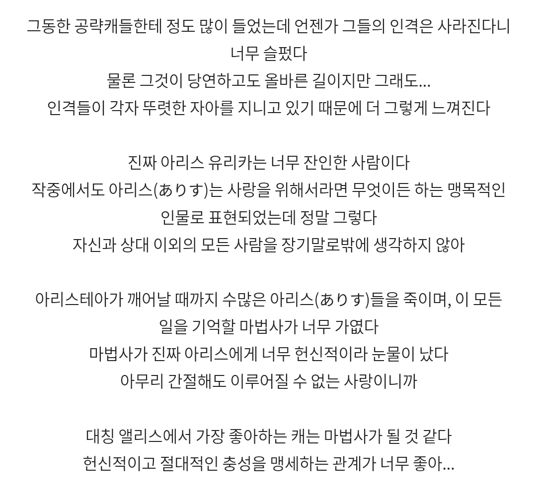지금은 비공개로 돌린 마법사 루트 초회차 감상문 일부