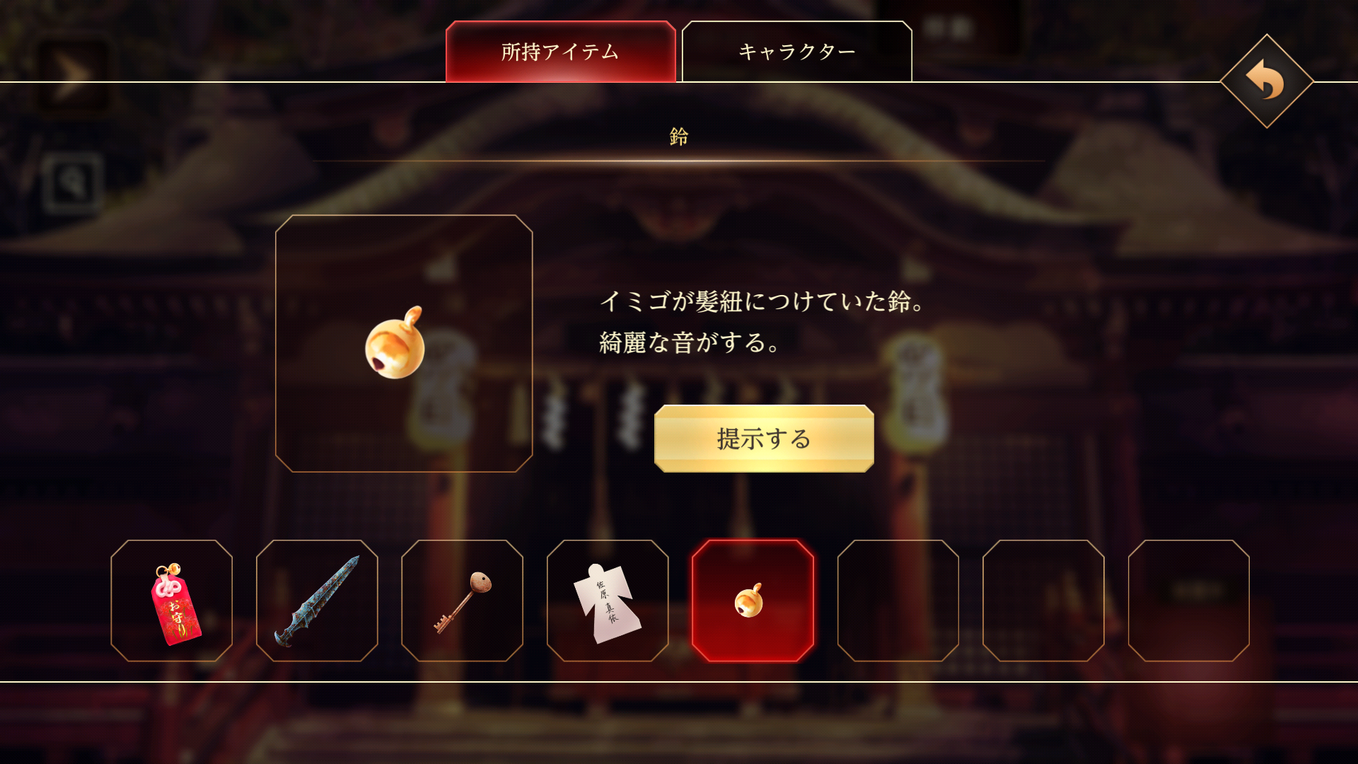 두 개의 방울을 단 부적은 타가타를 기리는 말사(末社)에서 이미고들의 무덤이 있는 신의 정원으로 향하는 열쇠의 역할을 한다