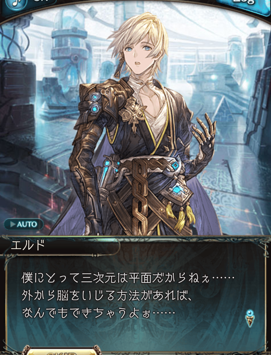 "엘도 말인데, 고차원 공간 인식 능력으로 xyz축에 더해 t축도 공간으로 인식할 수 있다, 라나 뭐나. t축은 수정 발진자로 상대치를 부여하여 내부에서 가상적으로 보완하고 있는 듯 해. ......솔직히 난 전혀 모르겠어."