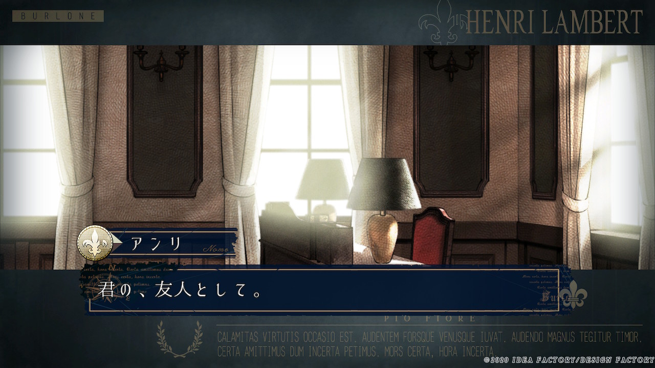 "실은 말이지, 앙리. 운명을 받아들이지 않고 저항하려고 했던 네가, 나는 나름대로 마음에 들었어. ......나도 '운명'이라는 말이 정말 싫어. 별은 제멋대로 움직여가지만, 바람대로 변화시키는 건 쉽지 않아. 그래서, 필요 이상으로 개입하고 말았지. 너를 벗과 같이 생각하고 있기도 하고."