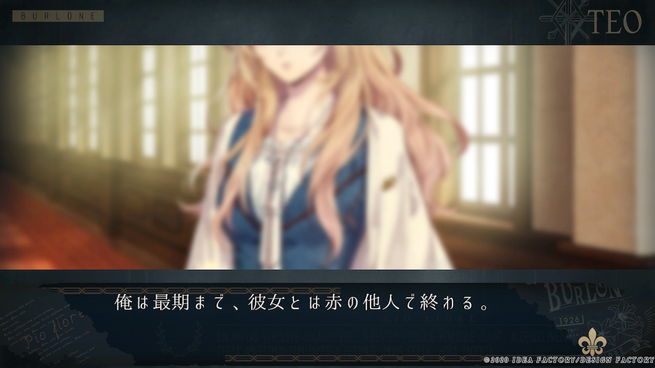 피오피오레의 만종 -Episodio 1926- 단테 감상 게임 전반적인 스포일러 o 스포일러를 포함한 다른 루트 후기는 ピオフィオーレの晩鐘 -Episodio1926- 피오피오레의 만종 -Episodio 1926- 길버트 감상 게임 전