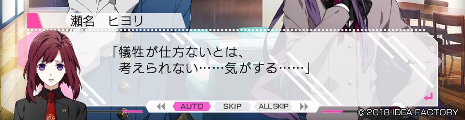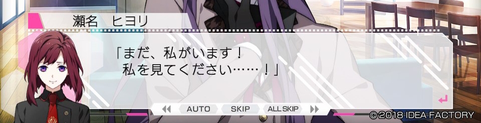"아직, 제가 있어요! 저를 봐 주세요......! 이오치 씨가 망설인다면, 제가 손을 잡아 이끌겠다고 말했었죠. 지지할 테니까, 반드시. 마지막까지 포기하지 않고, 이 불합리한 게임을 끝내요......!!"