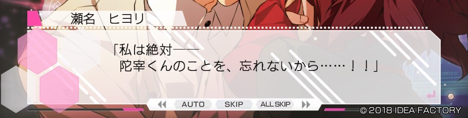 "적어도 마지막에...... 전하고 싶어. 좋아해, 세나. 잊지말아줘. 이번에야말로. 잊지말아줘...... 모두 잊어버려도, 나는 계속ー 잊지 않으니까."