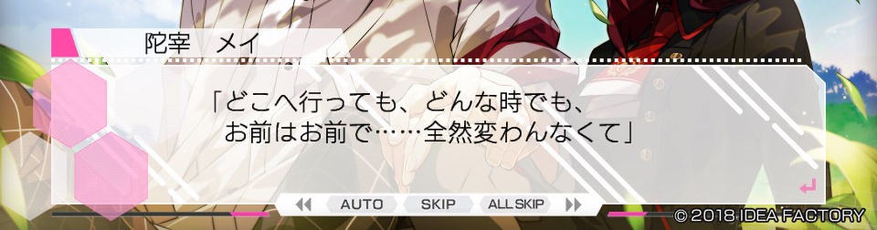 "어디를 가도, 어떤 때라도, 너는 너라서...... 전혀 바뀌지 않아서. 안심돼. 무척...... 괴로운 일이나 슬픈 일도 잔뜩 있었고, 지금도 아마...... 너는 괴로울 거라고 생각하지만."