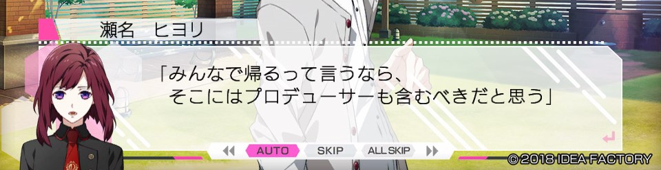 "모두 돌아간다고 한다면, 거기에는 프로듀서도 포함해야 한다고 생각해. 그러니 정했어. 이런 일은 빨리 그만두게 하고, 원래 세계로 함께 데리고 돌아갈 거야. 그것을 내 목표로 할까 생각해!"