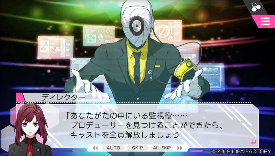 "당신들 안에 있는 감시역...... 프로듀서를 찾아낼 수 있다면, 캐스트 전원을 해방시키죠."