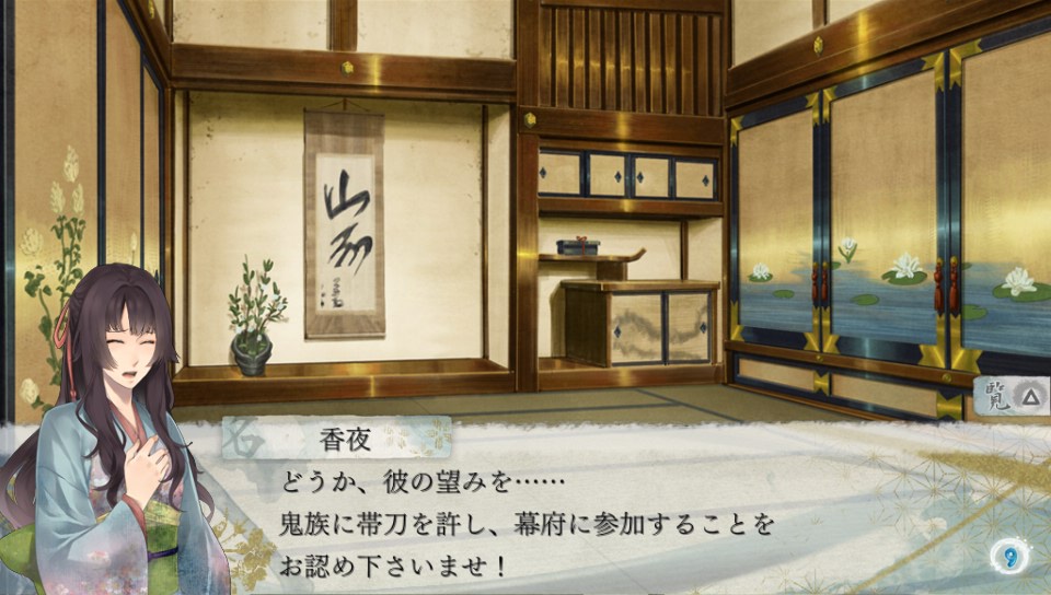 "부디, 그의 바람을...... 오니족에게 대도를 허가하고, 막부에 참가하는 것을 인정해 주시옵소서!"