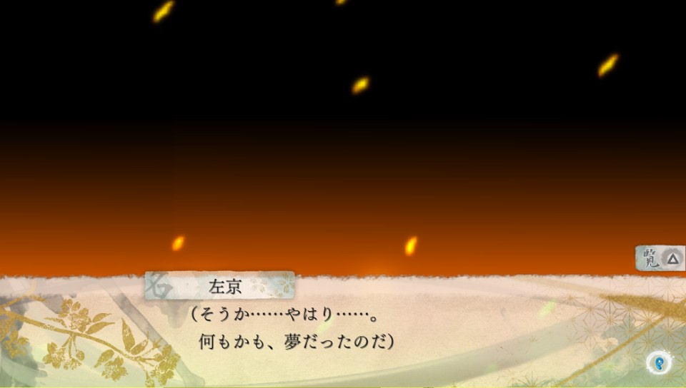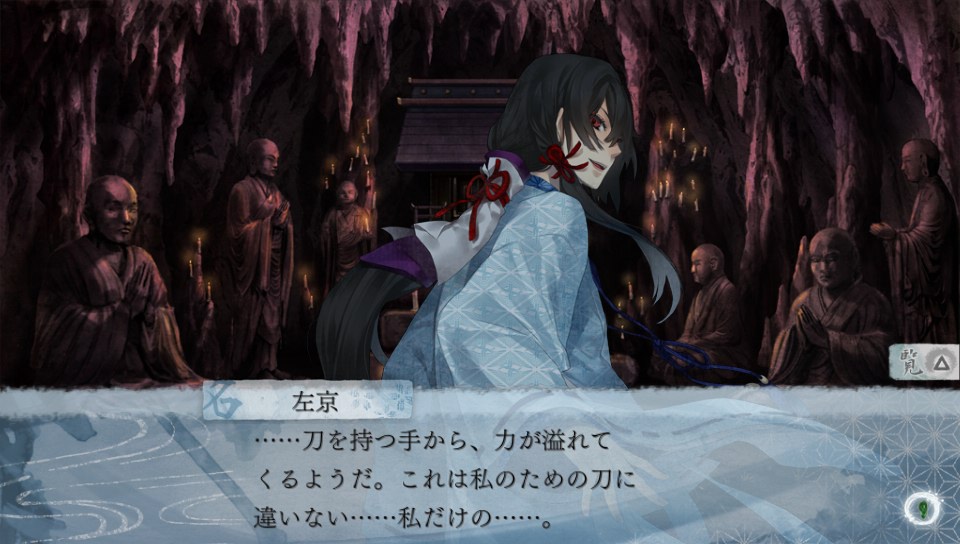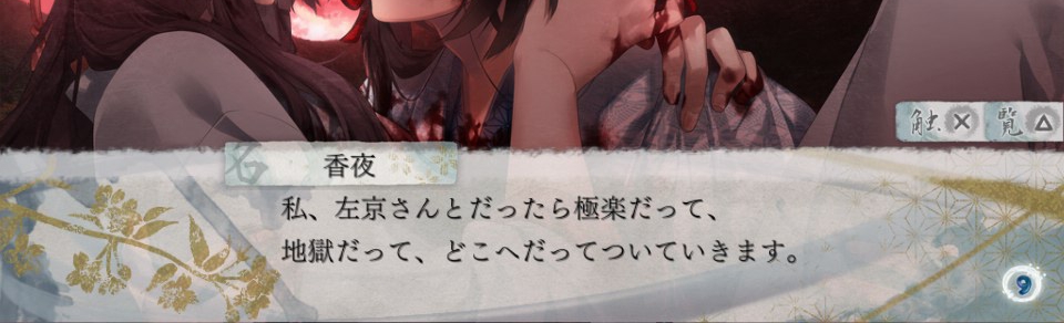 검 루트에서는 사쿄가 무라마사라는 검에 홀려서 인간이든 오니든 관계없이 보이는 대로 학살하면서 다니는데... 아무리 봐도 수습 불가능해서 파멸 엔딩은 확정이었다