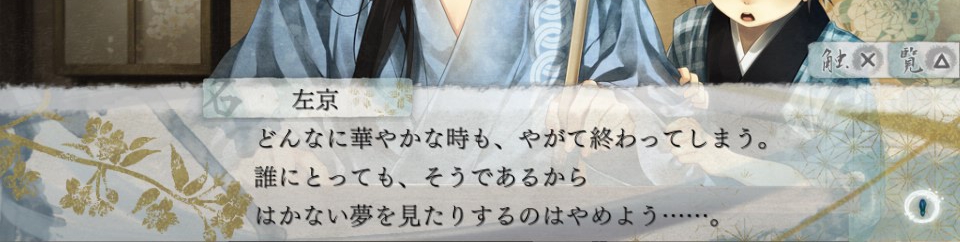 "아무리 화려한 때라도, 이윽고 끝나 버린다. 누구에게라도, 그렇기에 덧없는 꿈을 꾸거나 하는 것은 그만두자......"