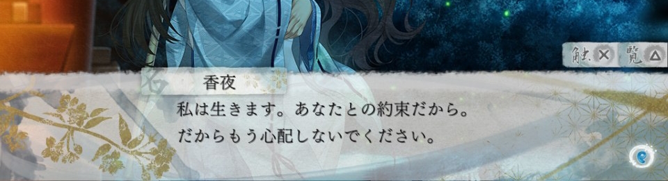 "저는 살아가겠어요. 당신과의 약속이니까. 그러니까 이제 걱정하지 말아주세요."