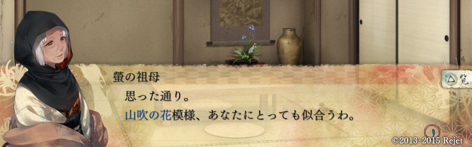 "생각한 대로. 황매화의 문양, 네게 무척 잘 어울리는구나."